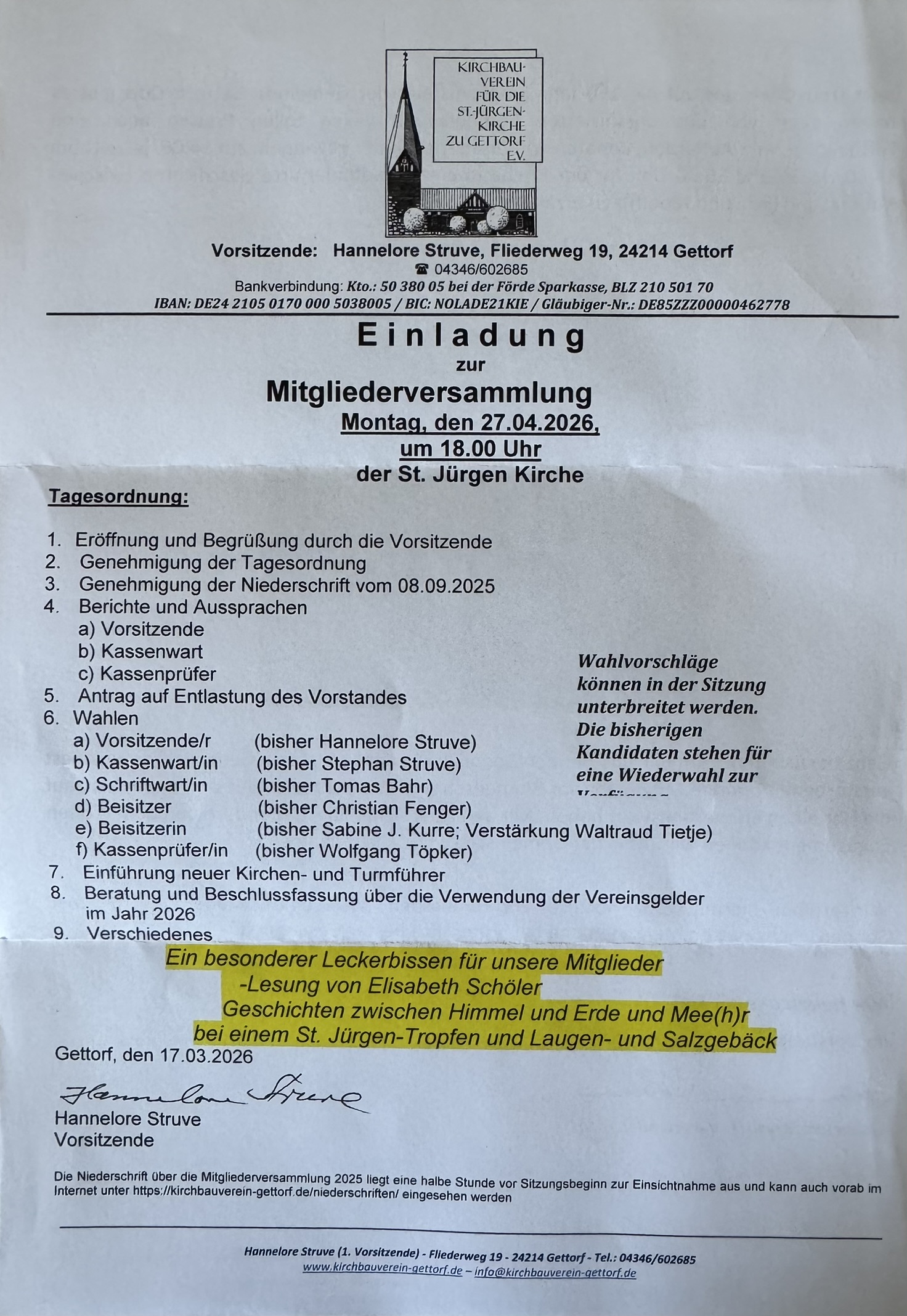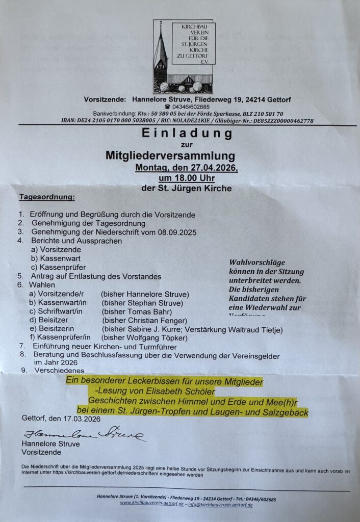 Spendenkonto des Vereins (Fördesparkasse Gettorf):